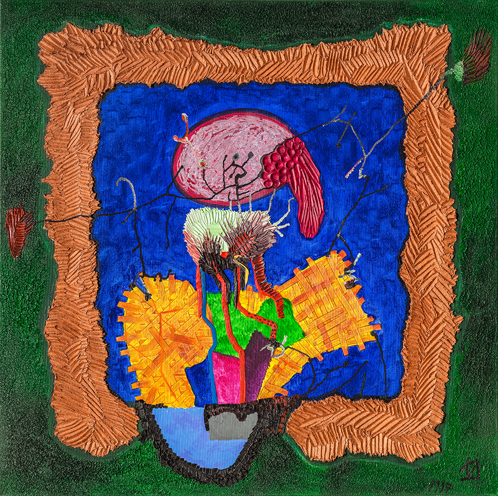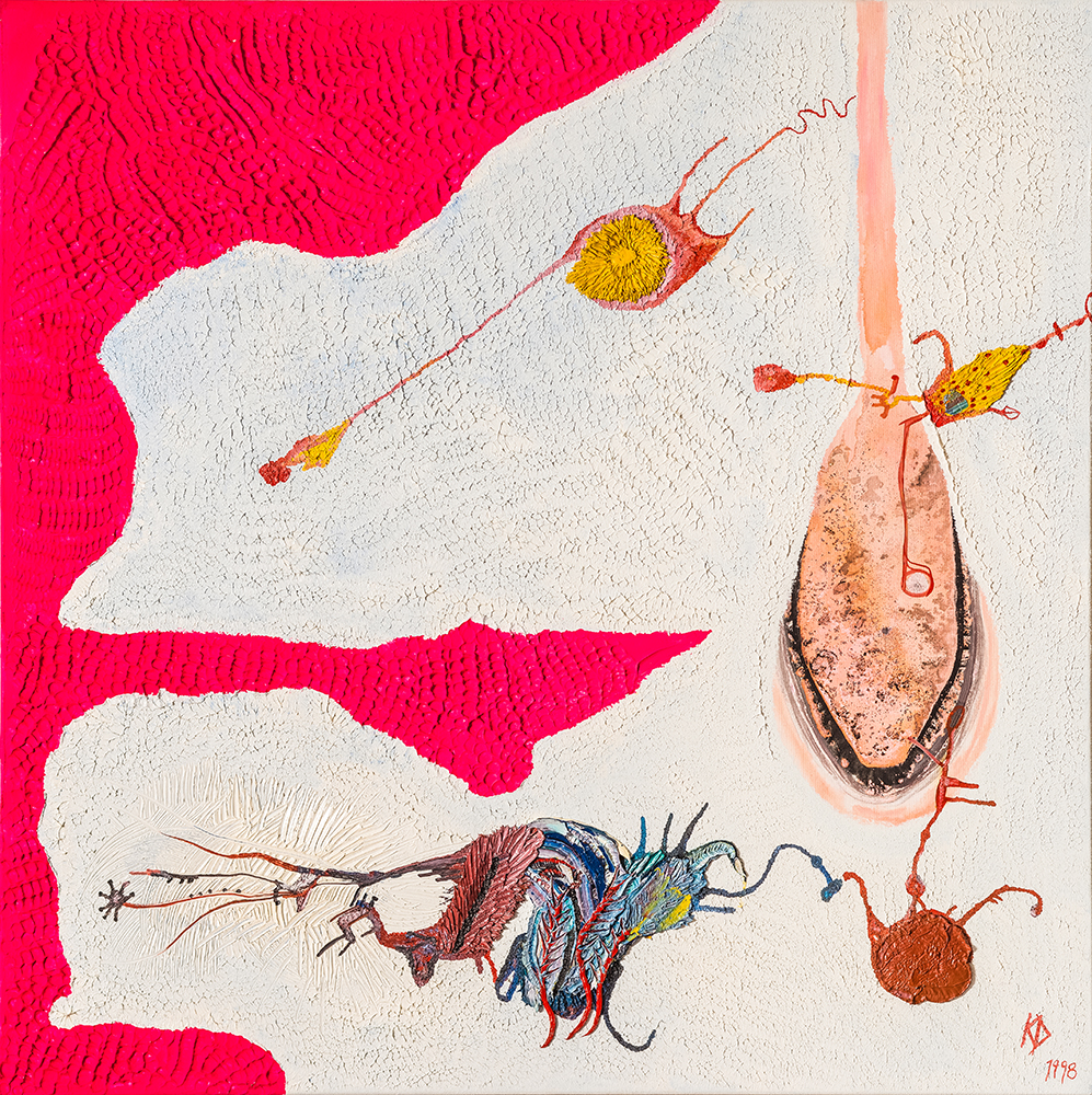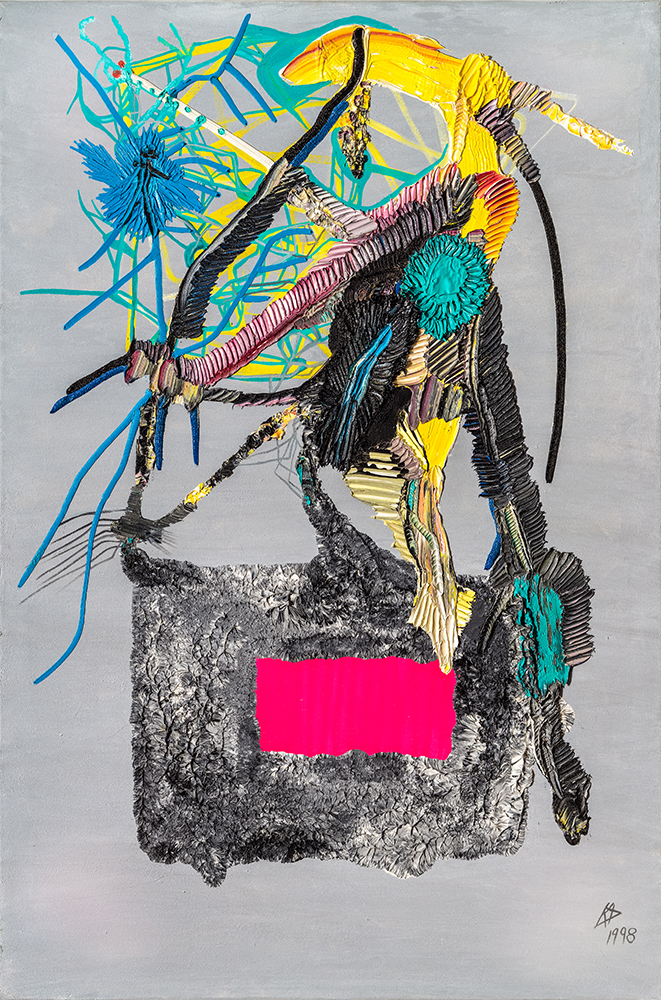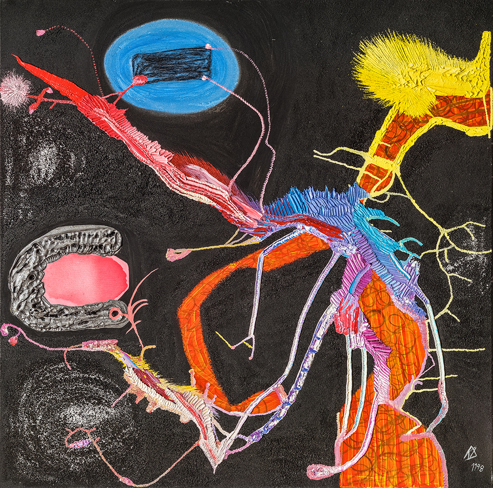 Farbrippenmalerei | Die Dämonen lachen im Herzen, 1998, 100x100cm