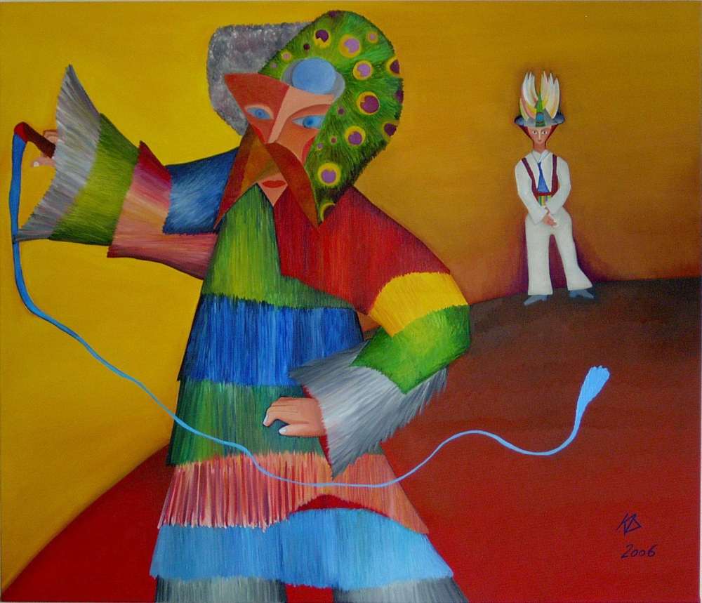 Maskenmenschen | Der Zottler, 2006, 140x120cm, Öl auf Lwd.